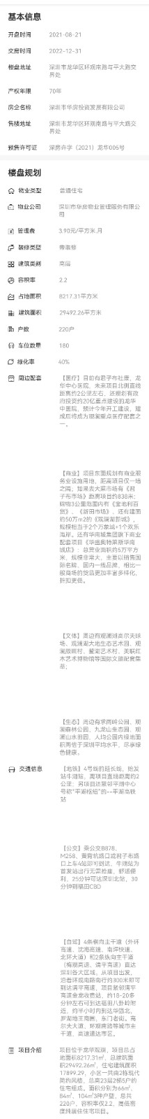 區域:深圳市龍華區環觀南路與平大路交界處 最新開盤:2020-08-21